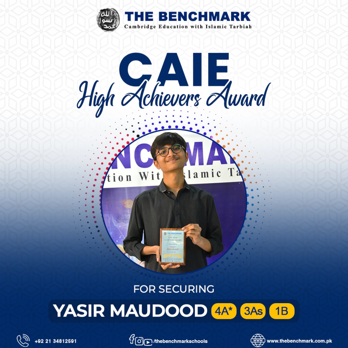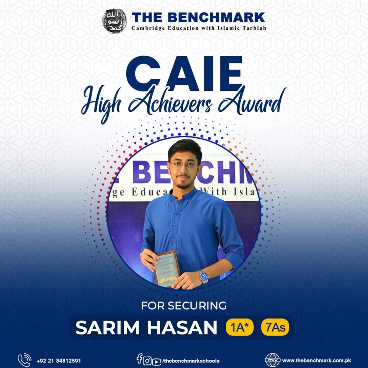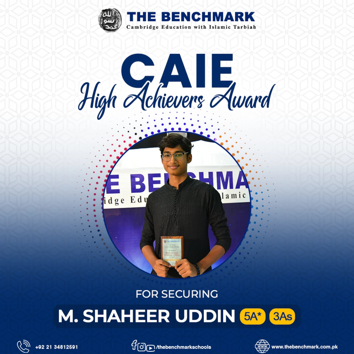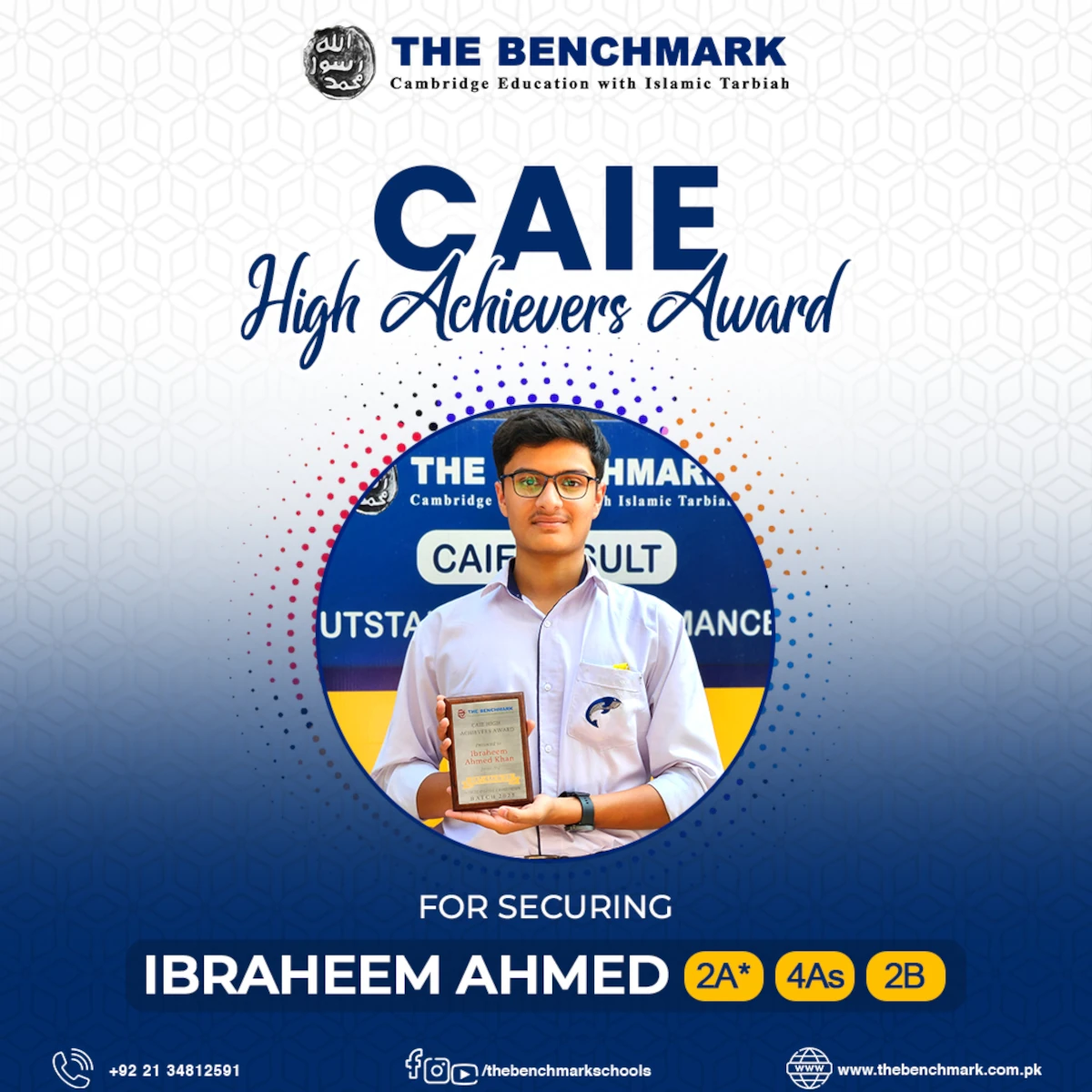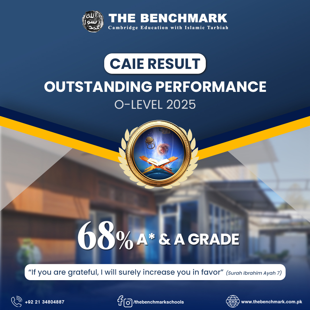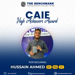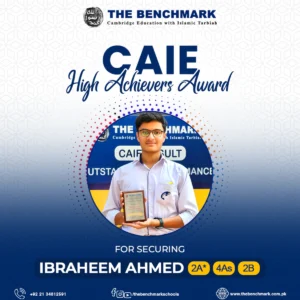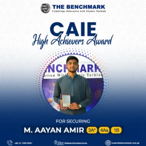 Our top achievers at The Benchmark School have demonstrated outstanding dedication and excellence in their CAIE examinations for the session 2024–2025. Their remarkable results are a reflection of their hard work, resilience, and the continuous guidance of our teachers.